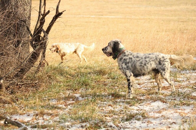 You probably get tired of hearing more Gunner stories – sorry I just can’t help myself, he’s turned into “super dog”. A friend of mine asked me to help out on an afternoon hunt Saturday at a local preserve. He had hunted his 3 year old Brittany in the morning and had hunted for 4 straight days before that. There were 40 quail, 8 chukars and 8 pheasants. My buddy ran his dog for the first two hours. We the got Gunner out of the kennel and hunted him for 1.5 hours on his own. Gunner pointed and held 15 quail, 3 chukars and 2 pheasants. He retrieved most of the birds to hand!!! To finish up the hunt we turned out both dogs at the same time. Gunner found a few more birds on his own and he backed both times that the female Brittany pointed. Other than teaching him to point birds standing on his head, I don’t know what more that he could possibly do!!! It’s friggin unbelievable!!!!